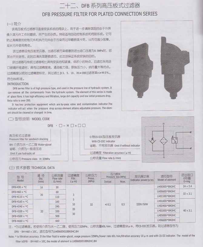 DFB-H110*20C高壓板式過濾器,現(xiàn)貨供應(yīng)